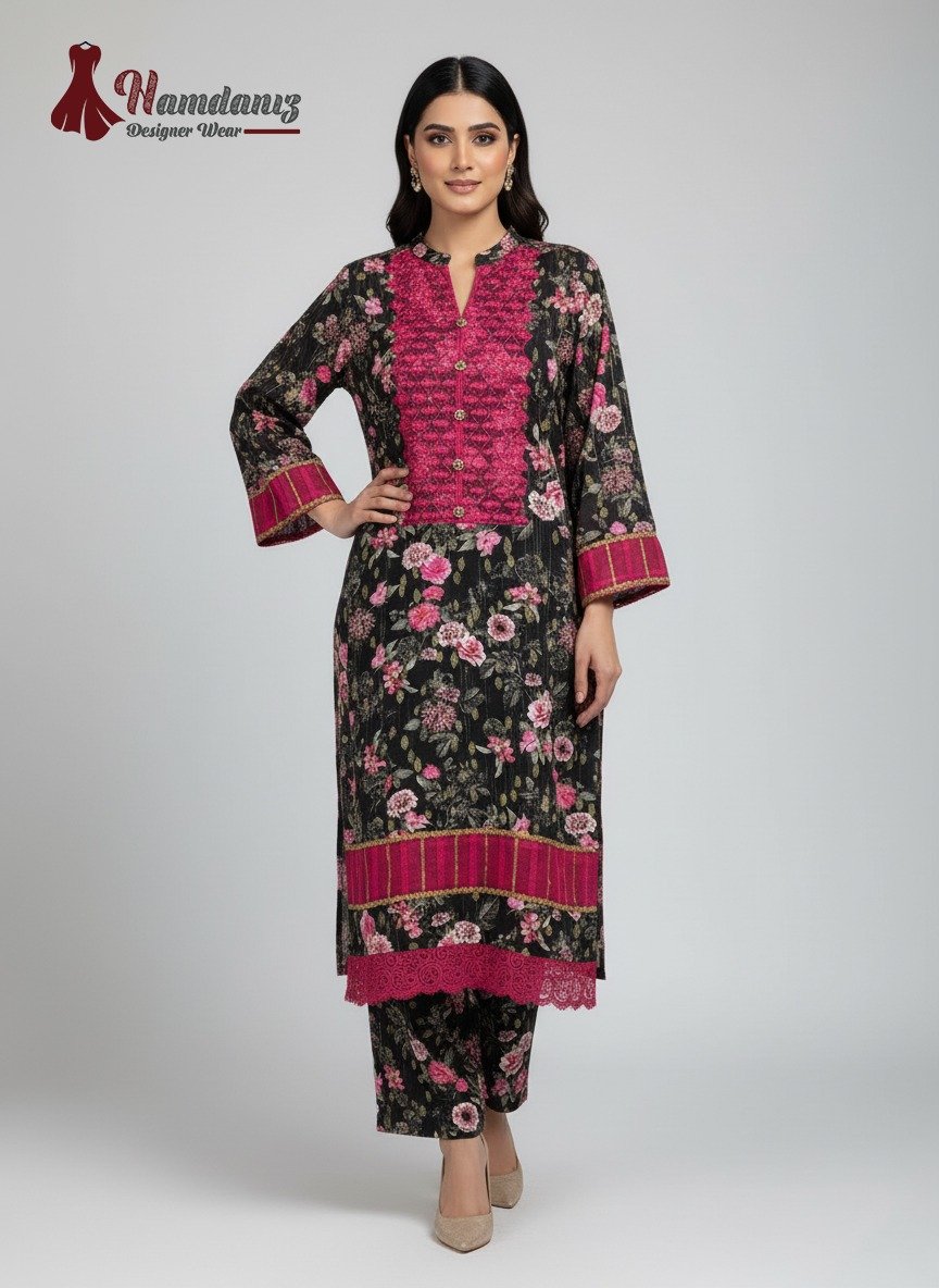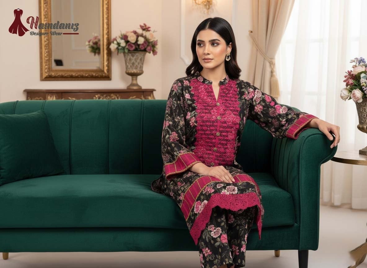 Elevate your wardrobe with this elegant floral 2-piece outfit by Hamdaniz.