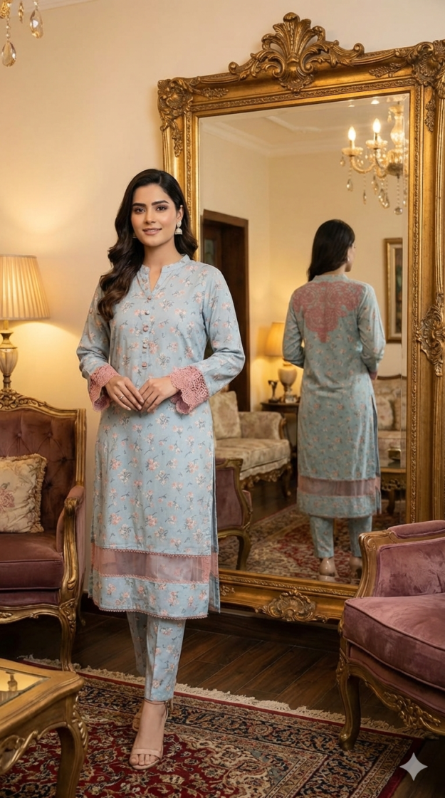 Two piece Stitched Brochia Lawn stitched suit