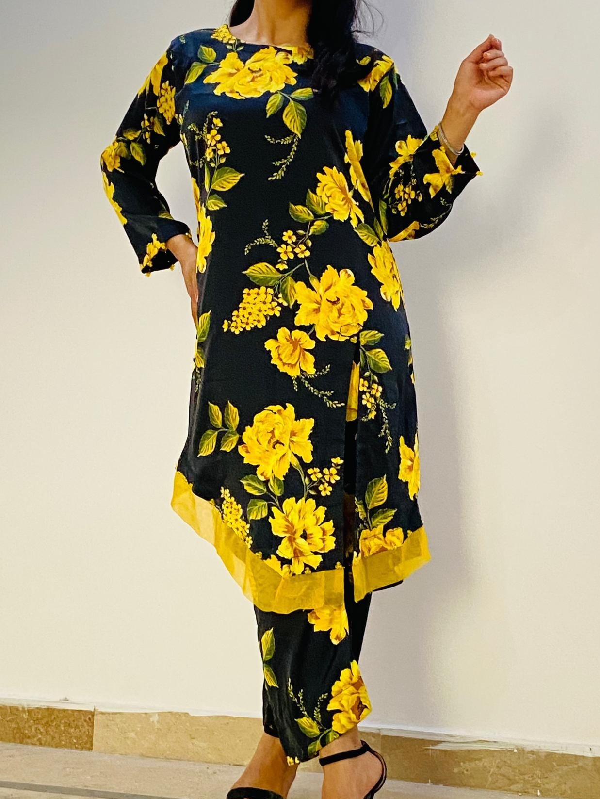Be the first to review “Silk flower printed 2-piece suit” Cancel reply