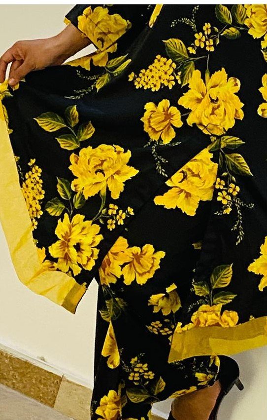 silk flower printed 2-piece suit from your brand Hamdaniz Designer Wear.